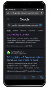 Então Cristina, decidida a mudar o cenário de “descontrole financeiro do seu negócio”, pega o celular e pesquisa por gestão financeira para e-commerce e encontra a G2L Finance & Control.